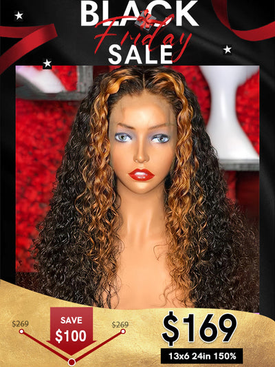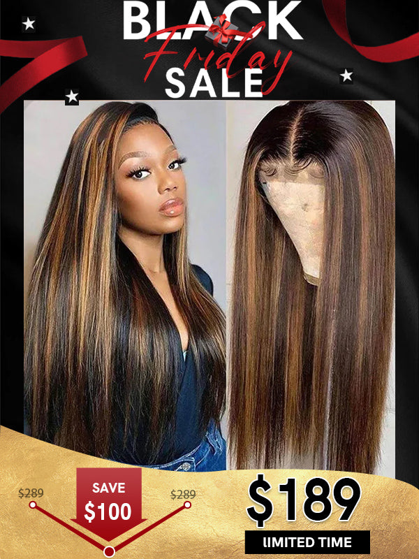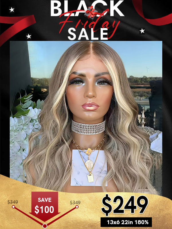 Doubleleafwig Black Friday Flash Sale Body Wave Ombre Highlight Color 360 HD Lace Frontal Wig Bleached Knots BF06